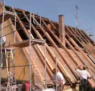 Dabei erhalten Sie alle Gewerke aus einer Hand, vom Gerüstbau über leichte Zimmermanns- und Flaschnerarbeiten bis zum traditionellen Dachdecken.